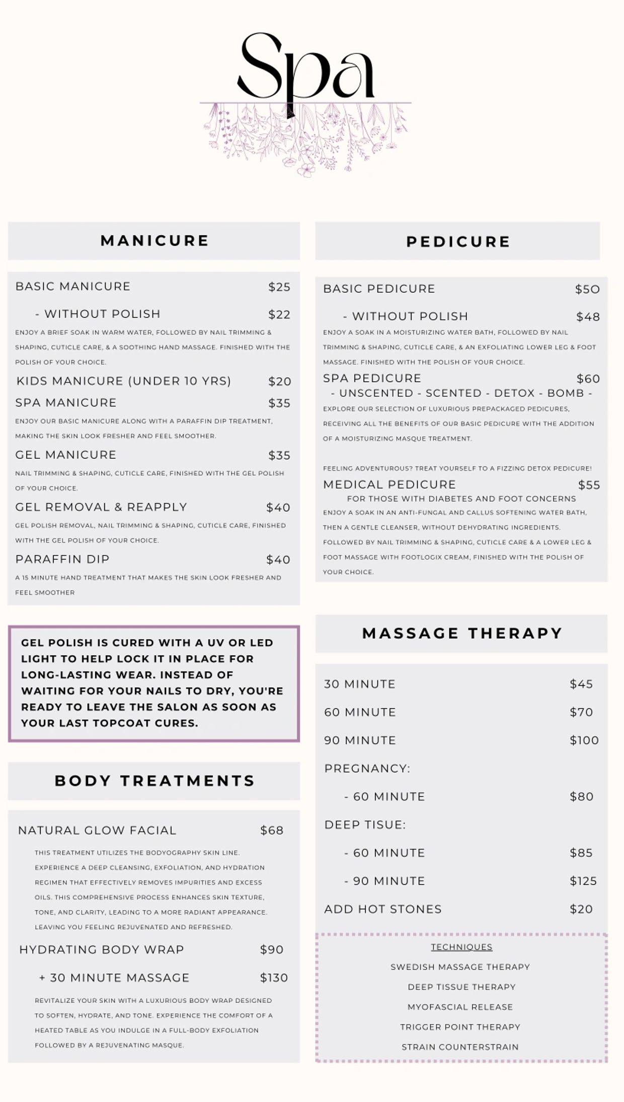 • Spa Menu